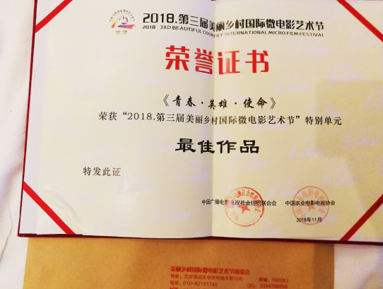 由中國人民解放軍寧夏軍區(qū)、寧夏回族自治區(qū)微電影協(xié)會、寧夏君臨天下影視傳媒有限公司報送的公益征兵影片《青春·英雄·使命》榮獲組委會最佳影片大獎,中國人民解放軍寧夏軍區(qū)征兵影片總導(dǎo)演魏軍及劇組代表參加了頒獎典禮?!肚啻骸び⑿邸な姑窂牟邉澋脚臄z共計(jì)耗時30天,影片通過少年子俊、大學(xué)生小王、軍嫂雪梅、老兵爺爺?shù)男〖仪檎宫F(xiàn)了青春、英雄、使命的家國情。剛剛被中國人民解放軍寧夏軍區(qū)授予中國人民解放軍寧夏軍區(qū)公益征兵影片優(yōu)秀奉獻(xiàn)導(dǎo)演的魏軍表示:“崇尚榮譽(yù)、尊崇英雄、精忠報國是該片展現(xiàn)的主要思想,祖國的英雄和榮譽(yù)是值得我們尊崇和崇尚的,通過普通的人物奉獻(xiàn)詮釋了我們、他們和她們對祖國的奉獻(xiàn)及捍衛(wèi)。”據(jù)悉《青春·英雄·使命》先后榮獲第六屆亞洲微電影藝術(shù)節(jié)金海棠獎、第三屆美麗鄉(xiāng)村國際微電影藝術(shù)節(jié)最佳劇情獎、最佳電影海報獎以及組委會特別單元最佳影片獎。